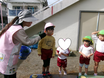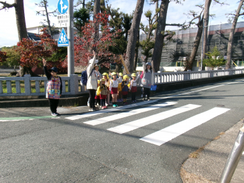 幼稚園に残ってくれる園務員さんに「行ってきます!!」の挨拶をして出掛けましたlaugh