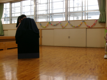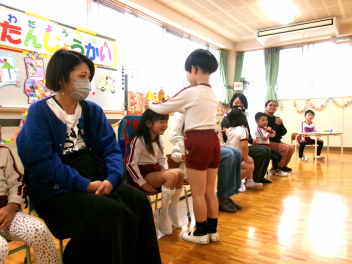 • 今日は年長ぞう組さんと年中ぱんだ組さんが、ケアセンター「あんしんの里」さんへ訪問し、踊りや歌や手遊びを披露させていただきました