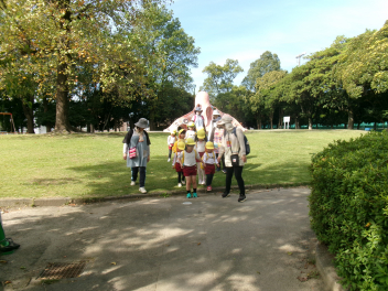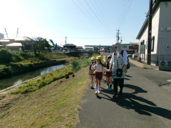 • 今日は風もなく、秋晴れlaugh安間川公園にお散歩に出掛けました!!今日は年長ぞう組さんが、年少うさぎ組さんと手をつなぎ、安全に気を付けながら出発です