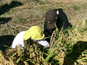 一生懸命運びました!!残っている稲はないか。落ちている稲はないか。しっかり確認!!