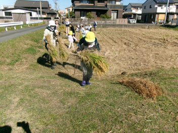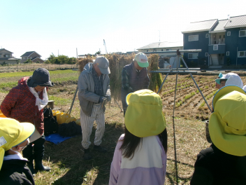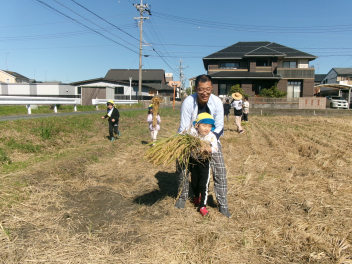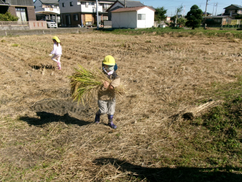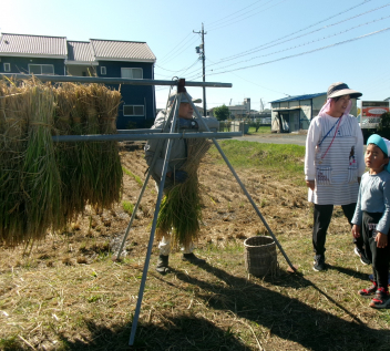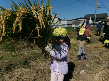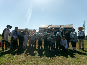 天日干しOK!!後は、一週間後の「脱穀」です!!今日も「田んぼの先生方」にいっぱいお世話になりました!!貴重な体験をありがとうございます!!中ノ町幼稚園のお友達とまた「脱穀」で会います!!ぞう組さんも「やりきった感」でいっぱいです!!「稲刈り楽しかった~!!」と秋を感じながら帰ってきました!!また「脱穀」を楽しみにしようね