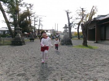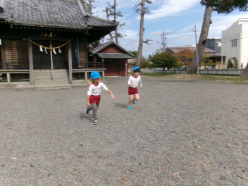 園庭が工事で狭くなってしまったので、神社へレッツゴー!!