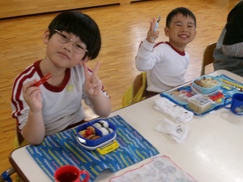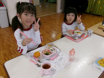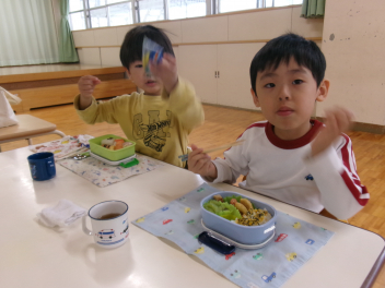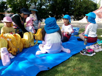 いっぱい歩いてお腹もぺこぺこです!みんなでお弁当を食べました