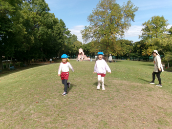 その後、みんなでおやつを食べたら、芝生で遊んで帰宅しましたfrown