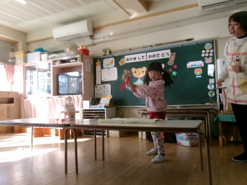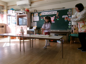 始業式からスタートです!!園長先生から「今年はうま年です。チャレンジの年といわれています。和田幼稚園のお友達も、色々なことに挑戦しましょう!!挑戦してできるようになると、心も体もぐんぐん大きくなります!!できなくても、繰り返し頑張ればできるようになります