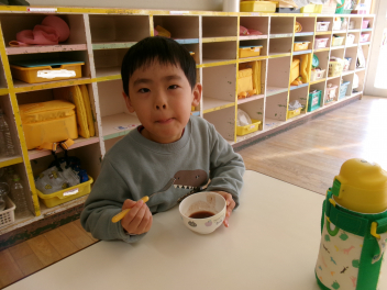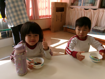 子どもたちが初詣に行っている間、園務員さんが「お汁粉」を作って待っていてくれました!!