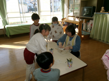 ぱんだ組さんも楽しみました!!しばらく「ぞう組カルタ」は続きそうです!!ぞう組さんの製作は、すご~い物がいっぱいです!!3年間の積み重ねを日々感じます!!こつこつ作った「おせち料理」も素晴らしい!!