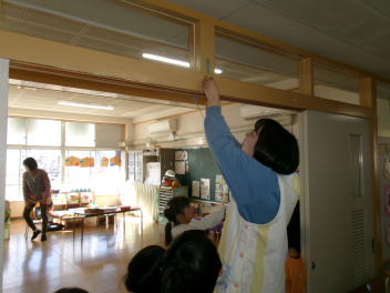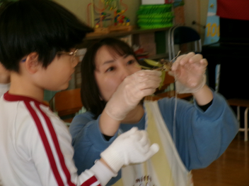 お昼前・・・ぞう組さんから「はい!!」「やったー!!」と元気いっぱいな声が・・・覗いてみると!!