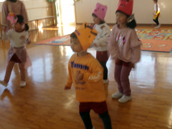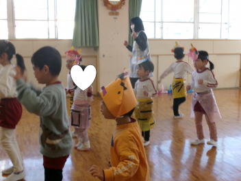 「鬼ごっこ!!」ですfrown2月3日の節分に向けて、各部屋で「鬼のお面」を作って遊んでいます!!今日は遊戯室に集合!!それぞれ鬼のお面を付けて遊んだり、踊ったりしました一人一人の思いが詰まった鬼です!!色や表情や角の数もそれぞれ!!みんなで楽しみました!!節分まで楽しんでいこうね!!