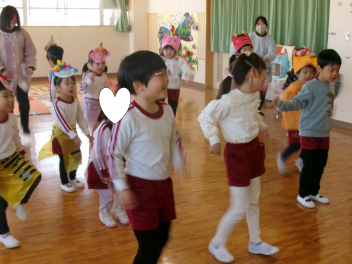 今日もいつものように、鬼の踊りを楽しみました!!たっぷり体を動かしたあと・・・