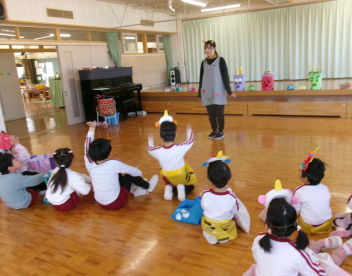 今うさぎ組さんには、実習生が入っています!!毎日の手遊びと絵本の読み聞かせがとっても楽しい時間です
