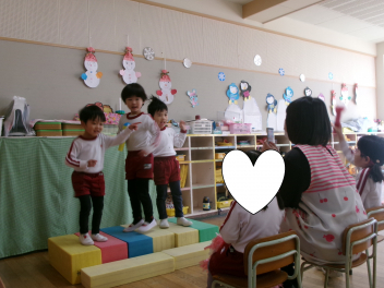 うさぎ組さんの「ショー」も毎日行われています!!「スマホで動画とってよ!!」とお友達に頼む姿もwink
