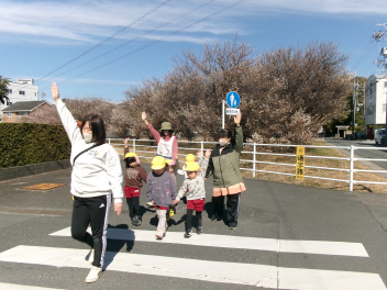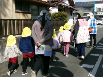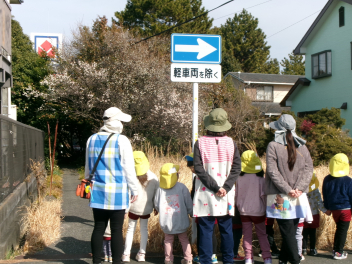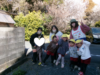 そして、今日は気温も上がり、風もなくいい天気になったので、幼稚園の周りにある「春」を探しにお散歩へ