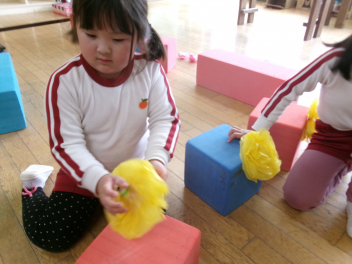 うさぎ組さんがぱんだ組さんに「リボンどうやってつくるの?」と聞いていました!「作ってあげよっか?」とぱんだ組さん!!
