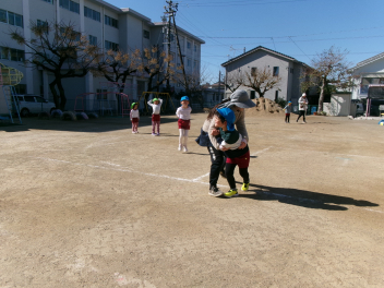 外での遊びは「けいどろ」でした!!キャーcheekyキャーと楽しそうな声が響いています!!異年齢児交流が、いつも自然と行われている和田幼稚園です!!