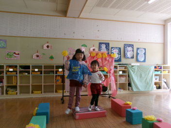 ぞう組さんとぱんだ組さんで「お雛様」を飾ってくれました