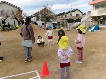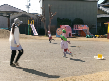 園庭では、色鬼や引っ越し鬼やかくれぼを楽しんでいるね追いかけられるのが楽しかったり、探してもらうのが楽しかったり、はしゃいでいる声が園庭中に響き渡っていますみんなで遊ぶのは楽しいね