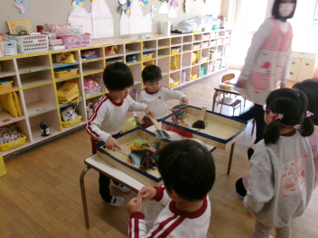 • 今週が始まりました!!子どもたちは、元気に登園frownうさぎ組さんで、アイドルショーが始まったり、ぱんだ組さんで、ファッションショーの準備をしていたり、「これをやりたい!!」と目的をもって楽しんでいますぞう組さんは・・・