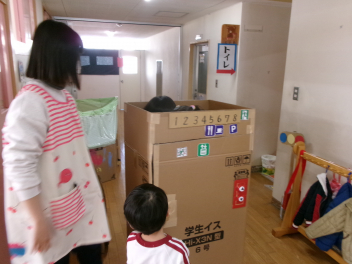 うさぎ組さんでは、子どもたちから「エレベターをつくりたい!!」の言葉に先生が即座に対応cheeky