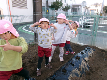 そして、この日frownうさぎ組さんとぱんだ組さんでじゃがいもの種を植えました