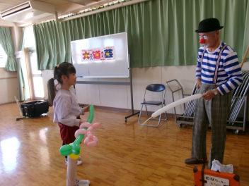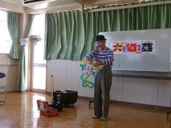 大道芸の「たなちゃん!!」ですfrownマジックありジャグリングあり楽しいお話あり子どもたちは、大道芸の世界に吸い込まれましたfrownとっても楽しかったねまた来てね「たなちゃん!!ありがとう