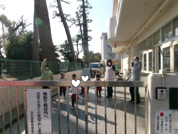 寒かった週末明け、元気いっぱい登園するこどもたちfrown