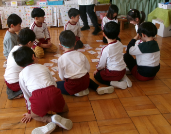 その後は、ぞう組さんが田んぼの先生方への御礼のプレゼントづくりfrownぱんだ組さんが、しっぽとりです時間はあっという間ですが、ぞう組さんは、自分たちがつくった「ぞう組カルタ」を持って行ったので、残りの時間で楽しみましたfrown