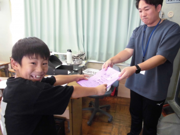 今日は、前期の成績表「あゆみ」を渡しました。担任の先生から、一人一人に頑張ったことや成長したことをお話してもらい、前期の学校生活を振り返りました。