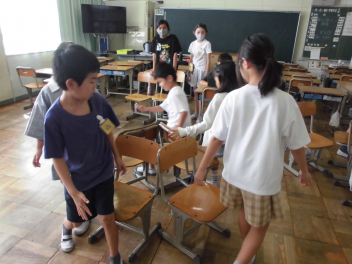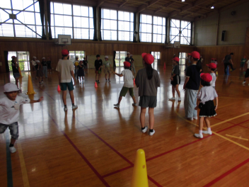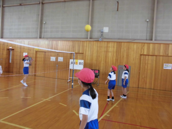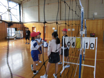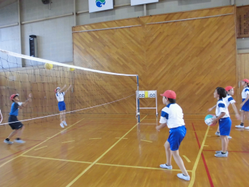 4年1組では、体育の「キャッチバレーボール」をやっていました。自分たちでルールや作戦を考えて試合を楽しみました。