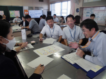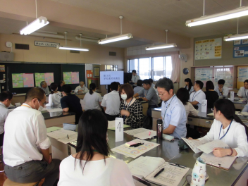 今日はPTA役員5名、天竜協働センター職員2名、学校ボランティア代表、全ての教職員が参加してグループ協議をしました。