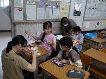 生け花クラブでは、講師の先生の説明をよく聞き、生け花をつくりました。完成した作品には、名札を付けて校内に展示しました。この他、体育館でバスケットボールクラブ、協働センターでドッチボールやバトミントンクラブなどそれぞれ好きなクラブで活動していました。参観した学校運営協議会委員の方からは、「子どもたちの集中して取り組んでいる様子が感じられた。素敵な活動ですね。」という感想をいただきました。今回のクラブに来ていただいた講師の先生、応援団の方々、ありがとうございました。