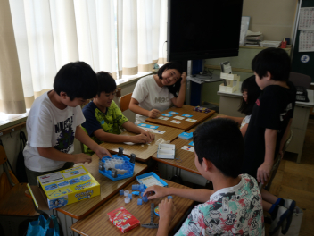 ゲームクラブでは、カードゲームやボードゲームなどタブレット端末を使わないゲームをしていました。4・5・6年生が一緒に参加していて、クラブ活動ならではの学年の枠を超えた交流がありました。