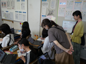 漫画・イラストクラブでは、好きなキャラクターをタブレット端末で調べて、イラストを描いたり、漫画の構図を考えながら、オリジナルの漫画を描いたりしていました。手芸・工作クラブでは、プラモデルや縫物の作品を自分の思い通りにつくっていました。