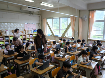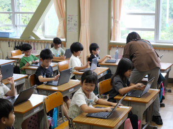 パソコンクラブでは、各自のタブレット端末を使ってタイピングの練習をしたり、気に入った教育ソフトを使ったりして集中して活動しました。