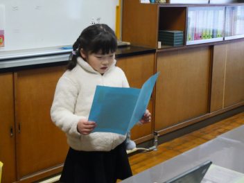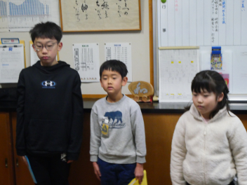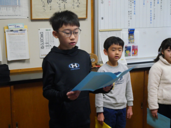 1・3・5年生の代表児童による3学期がんばりたいことの発表もあり、それぞれの子供たちが目標と取り組みを話しました。
