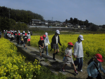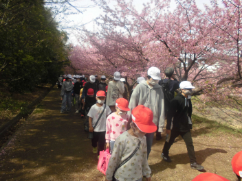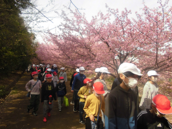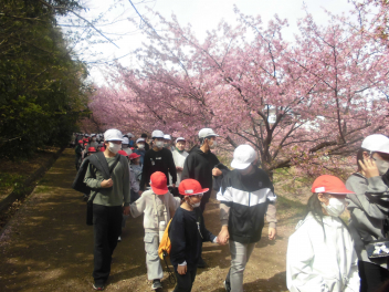 •  1年生と6年生が東大山河津桜まつりに行きました。学区の花川沿いを歩いていくと、川辺一面に菜の花も咲いていてとてもきれいでした。先週末に家族で来たという子もいました。地域の花川にこんなきれいな場所があることが自慢できる和地小学校はとても素敵な学校ですね。「また来たいね。」と多くの子供たちが話していました。