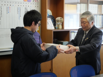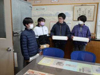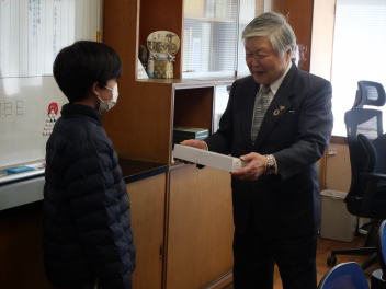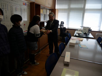•  昨年度に引き続き今年度も全児童による「ふるさと和地かるた大会」を開催しました。今年度のかるた大会は、全校児童が赤組と白組に分かれ、それぞれの勝利数の総数を競う対抗戦形式で行われ、学校全体が盛り上がりました。このかるたは、和地地区コミュニティー協議会様から御寄贈いただいたものです。本日は、和地地区コミュニティー協議会の浜井卓男会長が来校され、校長室で表彰式が行われました。浜井会長から、今年度も子供たちの励みになるようにと赤組、白組それぞれに素敵な景品もいただきました。地域の皆様の温かい御支援により、子供たちが楽しく郷土を学ぶ場を持てました。ありがとうございました。