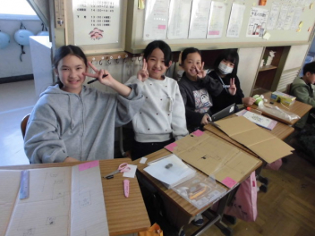 • 理科の授業で学んだことを生かして、自分たちで動くおもちゃを作りました。