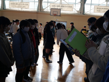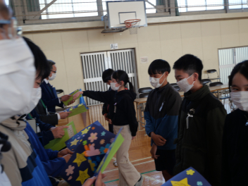 卒業を控えた6年生が卒業式の総練習後、6年間の学校生活でお世話になった先生方にお礼を伝える「感謝の会」を開きました。会の中では、卒業生が作成したメッセージカードを先生方にプレゼントし、感謝の気持ちを伝えました。素敵な一場面になりました。来週は卒業式です。 心に残る式にしたいですね。