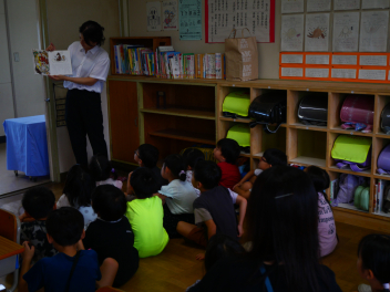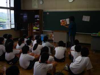 朝の時間、読み聞かせボランティアの皆さんによる本の読み聞かせがありました。今日は、1年生と6年生でした。1年生の教室では、ボランティアさんが本の内容に合わせたクイズをアドリブで出して、盛り上がっていました。楽しいお話を聞いて、本好きの子どもたちが増えていくといいですね。