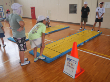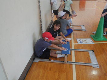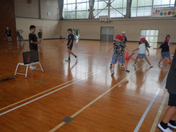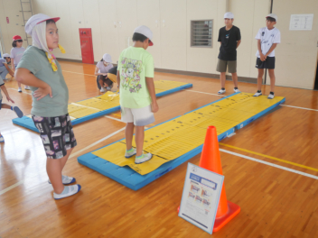 •  秋の新体力テストに向けて体育委員会の子どもたちが、昼休みに「新体力テストの種目を体験するイベント」を体育館で行いました。今日は、1年生と6年生を対象に希望者が集まりましたが、多くの参加者で盛り上がっていました。1年生は、体育委員会のお兄さんやお姉さんに教えてもらいながら、楽しそうにそれぞれの種目に挑戦していました。