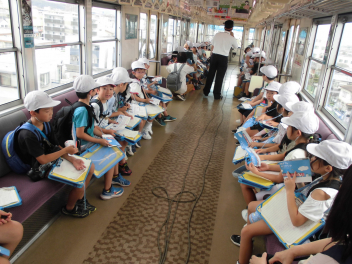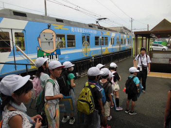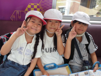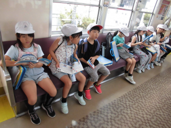 •  2年生が生活科の学習の一環として、電車に乗って新浜松駅から西鹿島駅まで行きました。駅では、駅員さんから切符の買い方や電車内での過ごし方を教えてもらいました。目的地の美薗中央公園では、友達と一緒にお弁当を食べたり、遊んだりしました。暑くもなく、過ごしやすい天候でした。いろいろな人が利用する電車に乗る体験を通して、社会性を身につけることができました。