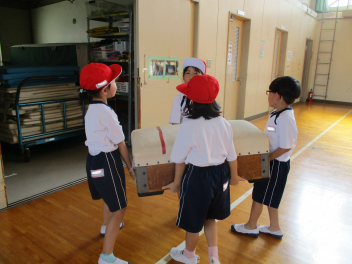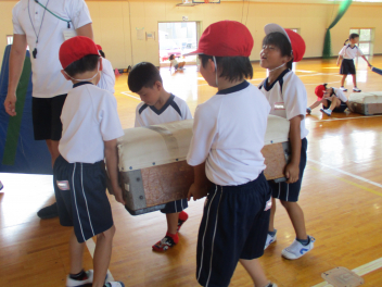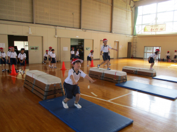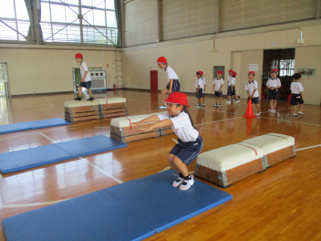 • 体育の授業で、「とびばこあそび」を楽しんでいます。