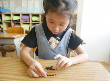 • 自分のアサガオから取れた種の数を数えてみました。