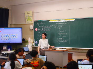 •  5年生の道徳科の時間、「ブランコ乗りとピエロ」の話を資料として活用し、相手を尊重することの大切さを学びました。子どもたちは、それぞれの場面での登場人物の行動を分析し、個々に考えたことを一人1台タブレットに入力し、その考えを学級で共有しました。タブレットを使った授業の方法を学ぶために本校の教員も参観しました。子どもたちが積極的に自分の考えを伝えあえる素敵な授業でした。和地っ子の子どもたちには、相手のことを尊重できる大人に育ってほしいですね。