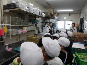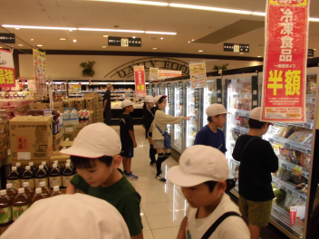 •  3年生の社会科の時間、スーパーマーケットを見学するために「遠鉄ストア桜台店」に出かけました。お店では、店長さんの説明の後、普段見ることができないバックヤードを見せていただきました。バックヤードでは、売るサイズ別に野菜を切る様子やパッケージの工夫を見て、学びました。子どもたちは「広告はいつ入れるのか」「値段は誰がどのように決めるのか」「お店が一番混み合う時間帯は」など疑問に思ったことを質問していました。スーパーマーケットの様々な工夫を知ることができました。