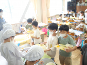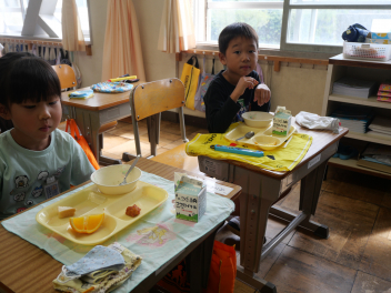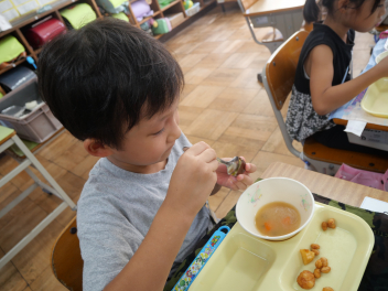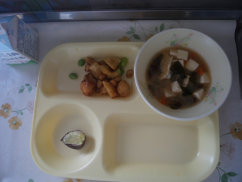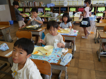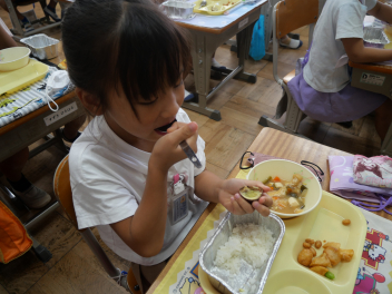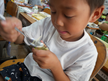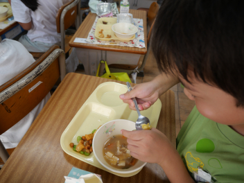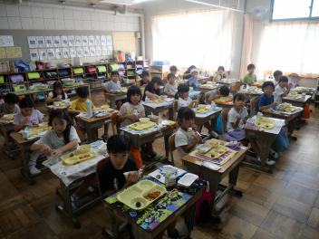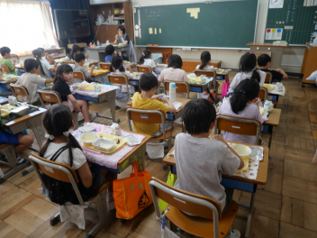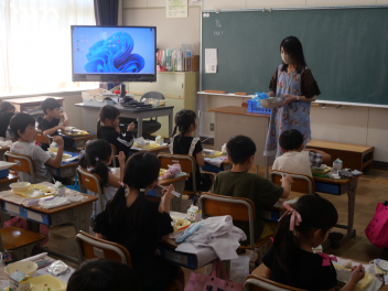 1年生の教室では、ゆでた栗を初めて食べる子が半数以上いました。それでも、食べてみたらおいしかった。また食べたいなという子がほとんどでした。学校給食を通して、様々な食材と出会い、なんでも食べて、健康で丈夫な体を作っていってほしいですね。