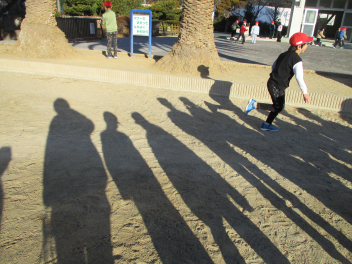冬は、影も長くなります。寒くても元気な子供たち影ふみ遊びも楽しんでいました。