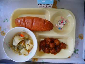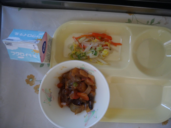 •  今日の給食は、世界の料理「中国」の献立でした。広い国土と長い歴史によって作られた中華料理は、世界三大料理の一つで、世界でも親しまれています。中華料理を種類や地域によって大きく分けると北京料理、上海料理、四川料理、広東料理の4つに分けられます。今日の献立の酢豚は、広東料理の一つで、豚肉と魚介類、野菜など、いろいろな食材を使って作ります。辛みがなく、甘酢の濃い味が、昔から好まれています。3年生の子供たちも食が進んで、たくさん食べていました。