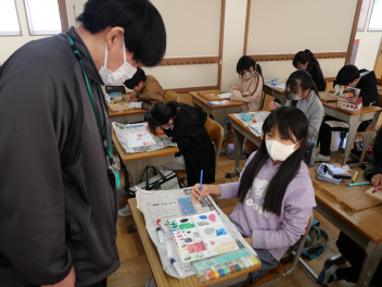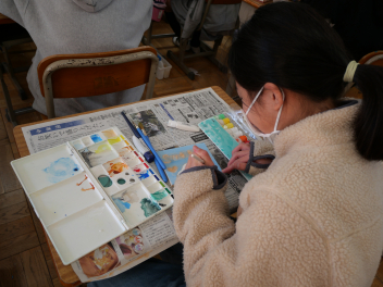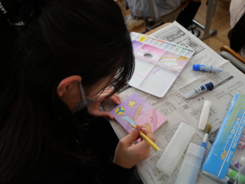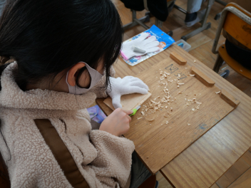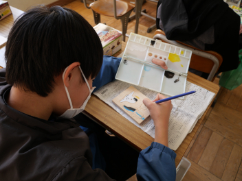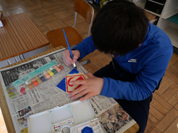 6年生の図画工作科の時間、卒業制作のオルゴールの箱に飾る絵を描きました。最初に木の板に鉛筆で下書きをして、彫刻刀で彫を入れてから絵の具で色付けをしました。卒業に向けて、心を込めて思い思いの作品を作っていました。素敵なオルゴールの箱ができそうですね。